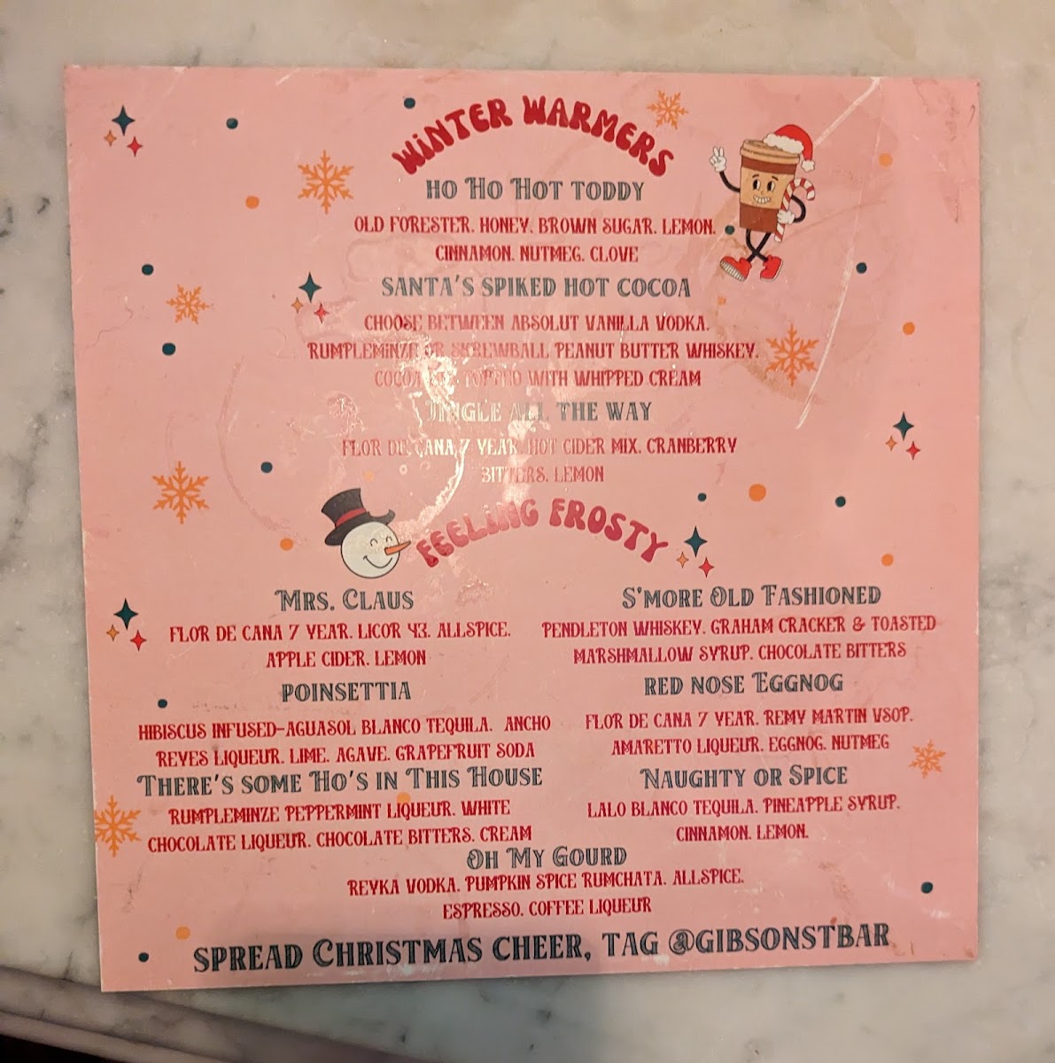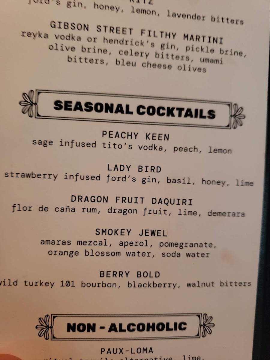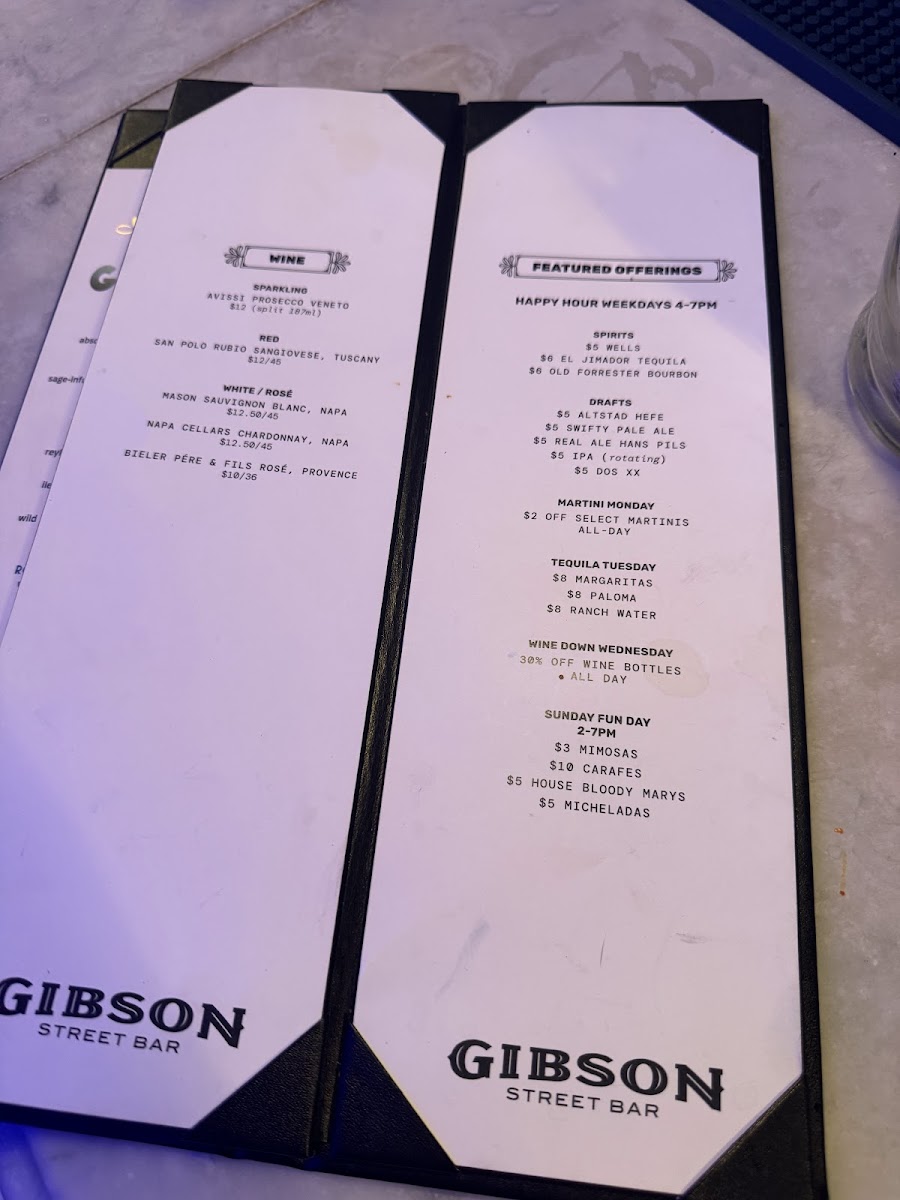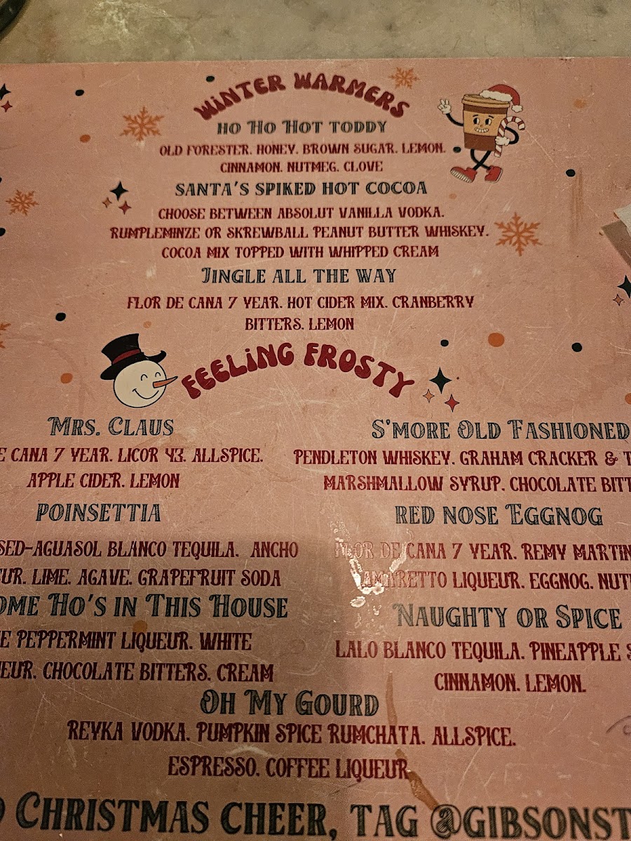 Gibson Street Bar Menu